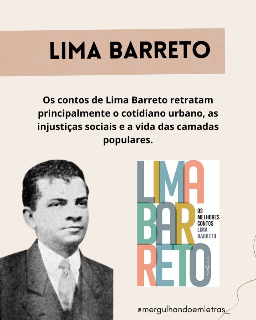Sua escrita direta, crítica e sensível retrata o cotidiano das camadas populares e as falhas das instituições brasileiras. Entre suas obras mais marcantes estão “Triste Fim de Policarpo Quaresma” e o livro de contos “Os melhores contos de Lima Barreto” que revelam a desigualdade e a burocracia opressora.